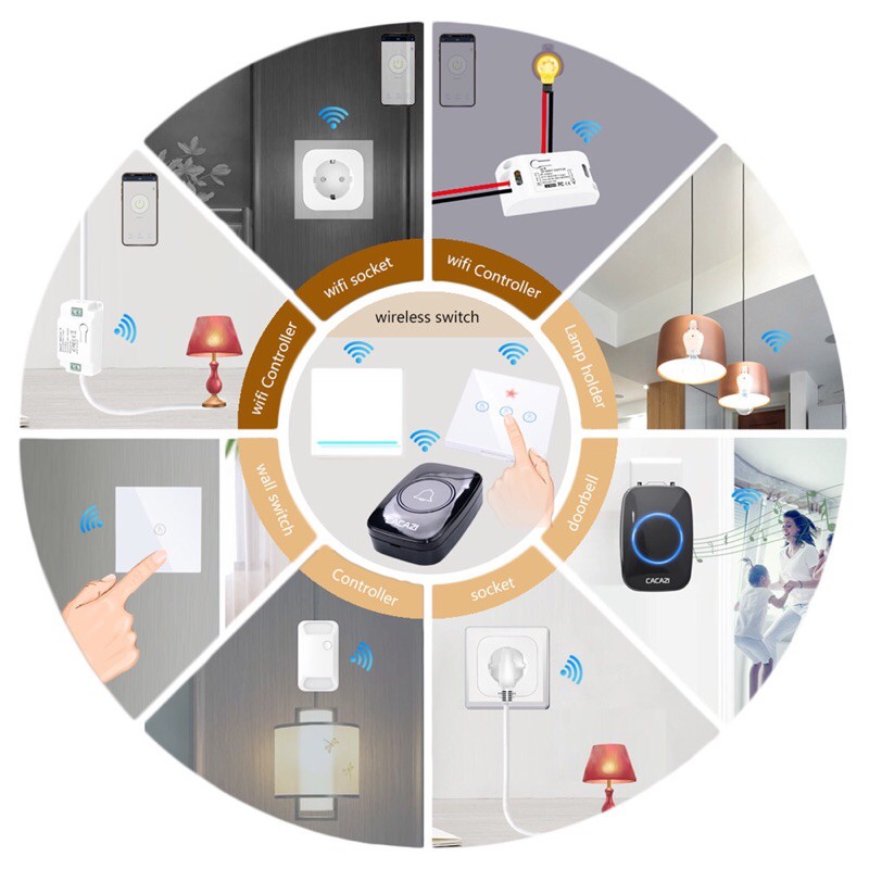 Thiết Bị Điện Gia Dụng > Mạch điện & Phụ tùng > Chuông cửa || [ BH 1 đổi 1]Chuông cửa CACAZI dán tường ko dây, 36 giai điệu cách xa 300MCòn hàng