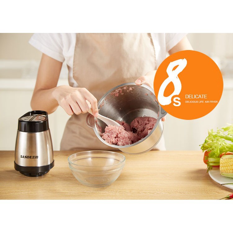 [BH 1 ĐỔI 1] Máy xay thịt đa năng SANDE - Hàng chính hãngXay nhanh và tốt nhiều loại thực phẩm như: thịt, cua, cá, rau củ quả, xay các loại hạt, xay đá, xay sinh tố, xay cháo, đồ ăn dặm cho bé...