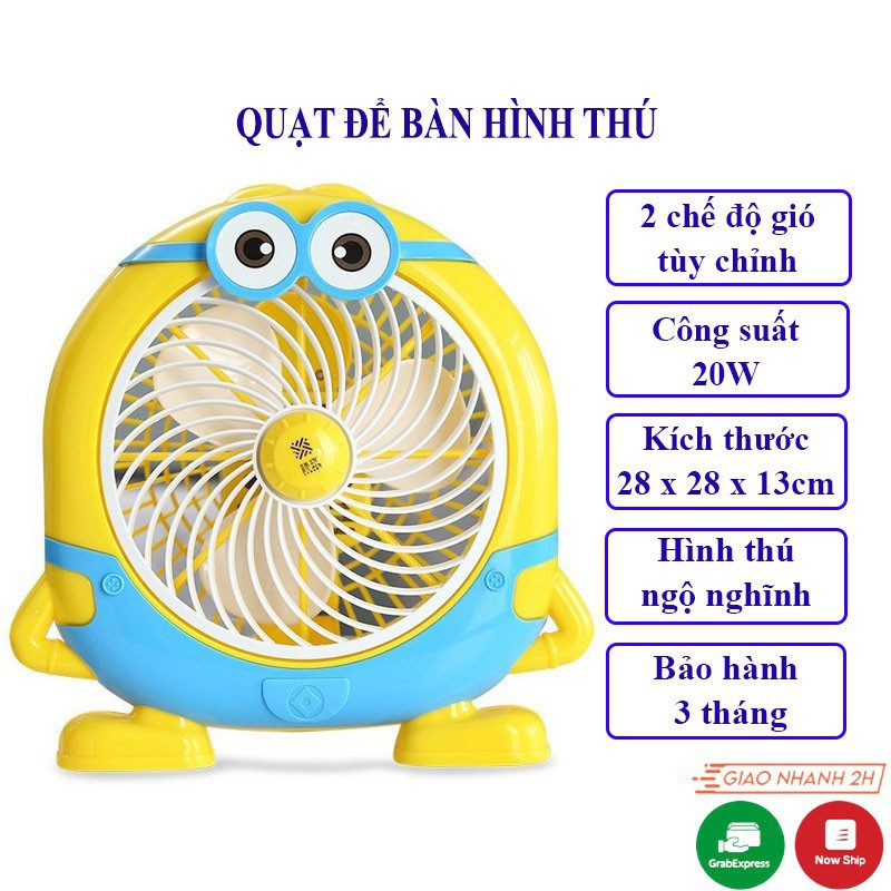 [BH 1 ĐỔI 1] Quạt Mini Quạt Để Bàn Hình Thú Dễ Thương - Để Bàn Làm Việc, Giường Cho Bé, 2 Tốc Độ Gió, 20W, KT 29x29x13cm