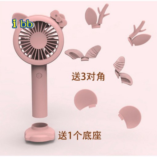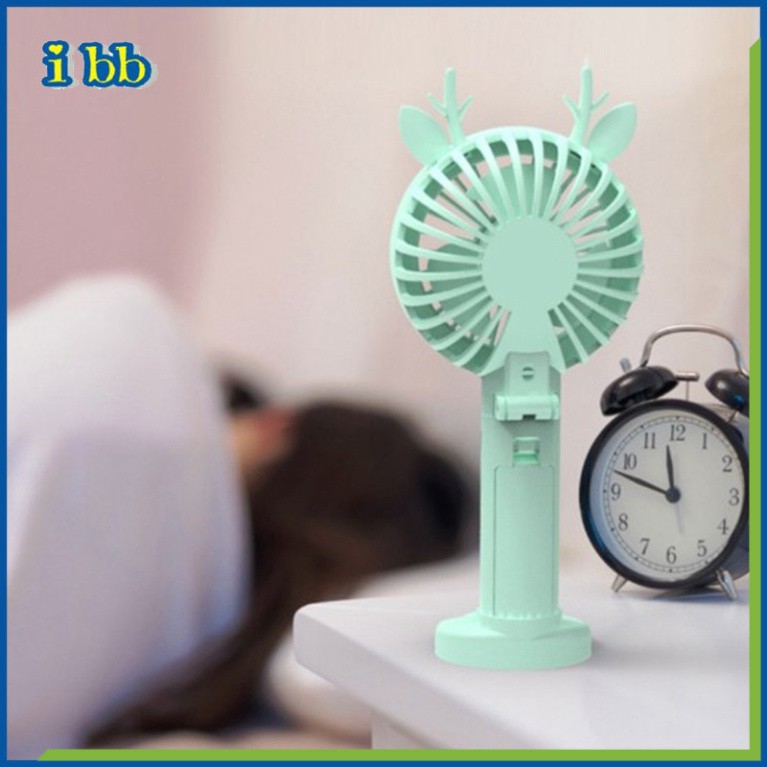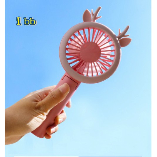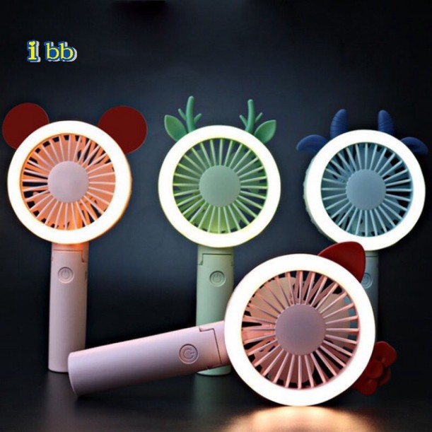 Quạt tích điện cầm tay IMEBOBO 3 tốc độ gió siêu mát, 2 mức đèn led, pin cực trâu TẶNG KÈM TAI dễ thương