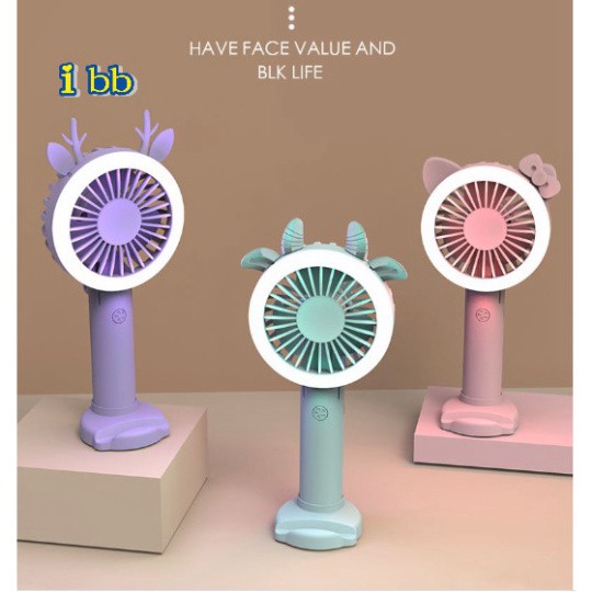 Quạt Tích Điện Mini Cầm Tay Có Đèn Led với siêu ưu đãi đi kèm:- TẶNG 4 tai siêu dễ thương