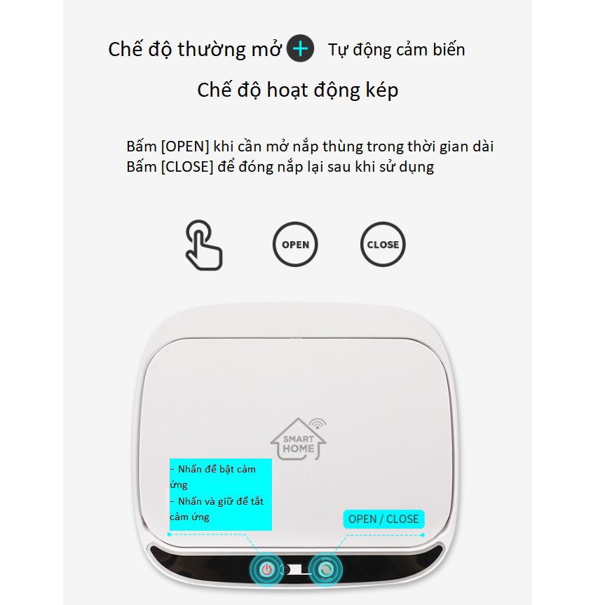 Thiết kế cảm ứng giúp bạn không cần chạm tay mở nắp, hạn chế các vi khuẩn có hại gây bệnh