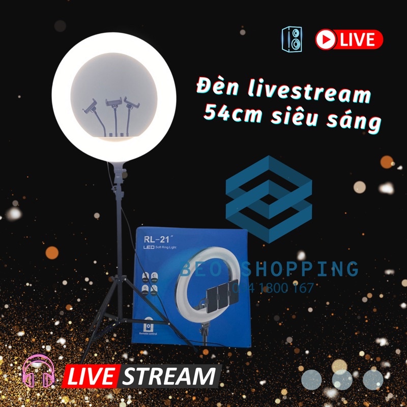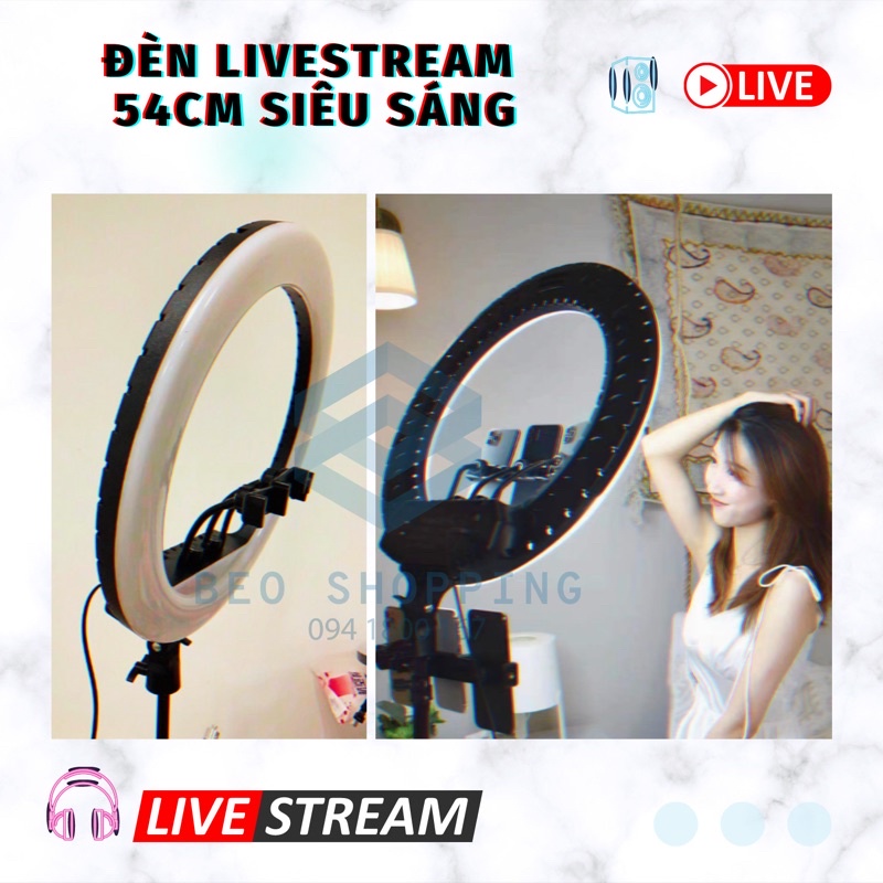 Đèn siêu sáng kích thước 54 cm, hỗ trợ livestream chụp hình, make up, có thể xạc điện thoại. Ánh sáng lớn để chụp hình cho studio.1. THÔNG SỐ KĨ THUẬT