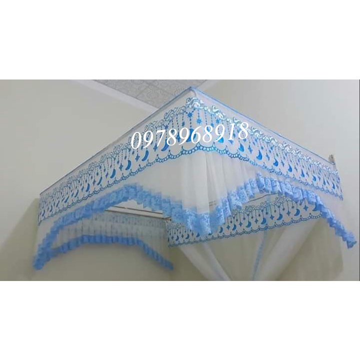 Màn khung ren lạnh màu trắng phối ren màu, Đủ kiểu và màu sắcChất vải tuyn lạnh, Chất vải mát mịn mềm và dai, Mắt vải dày