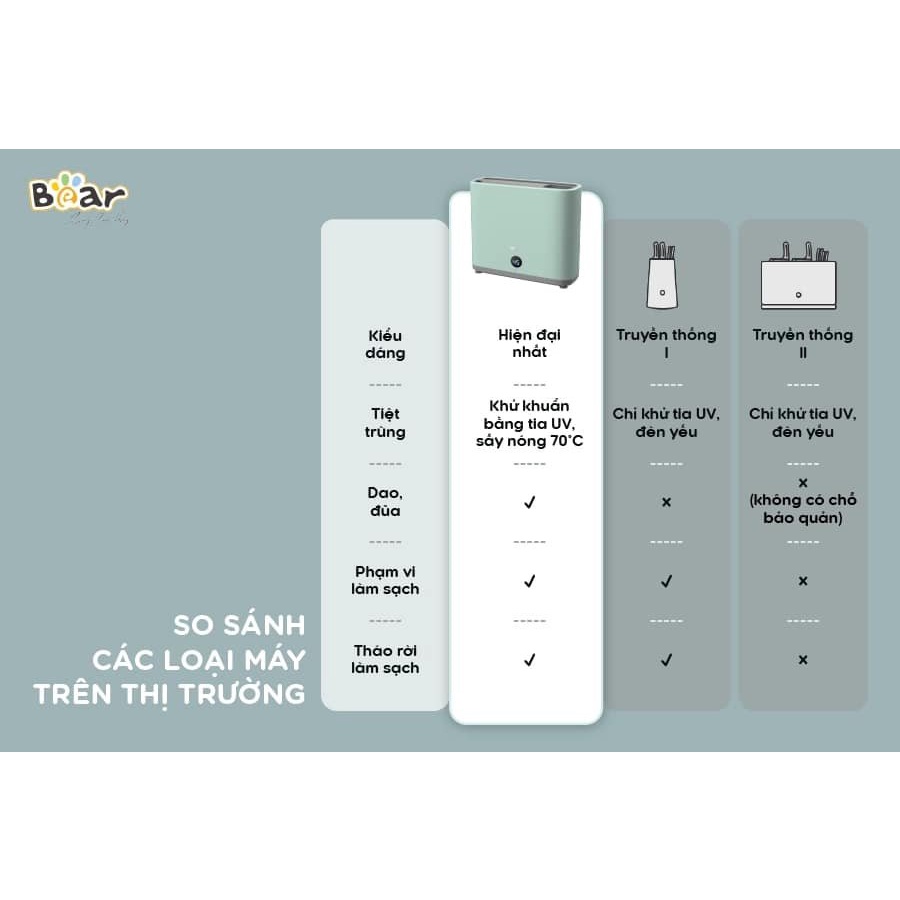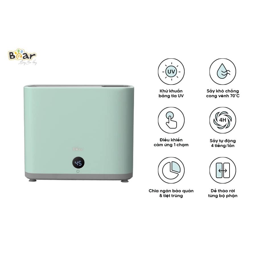 - Máy sấy khô tiệt trùng bear, sấy khô bằng khi nóng 70 độ, tiệt trùng bằng tia UV.