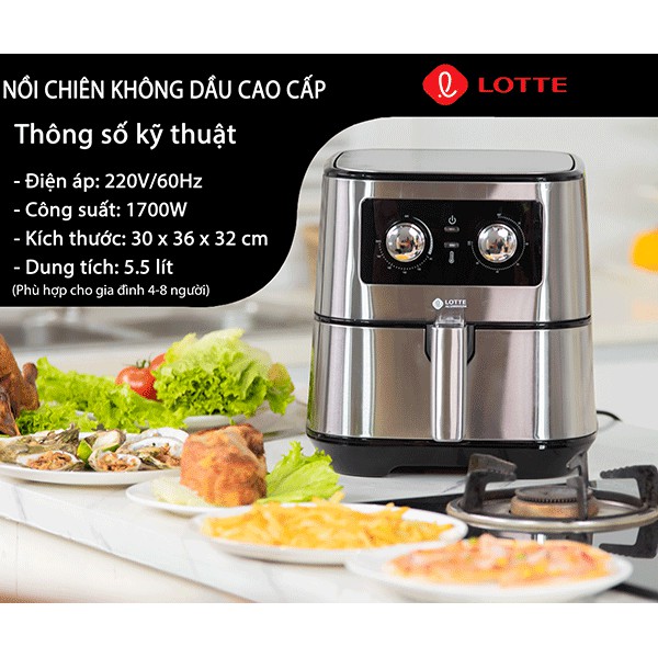 Thiết Bị Điện Gia Dụng > Đồ gia dụng nhà bếp > Nồi chiên không dầu || [BH 1 năm] Nồi chiên không dầu Lotte 5,5L LTS - AF5SM, Nồi chiên không dầu Lotte chính hãng mới nhất 2021Còn hàng