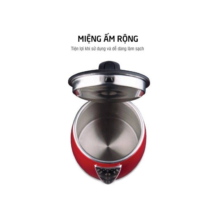 - Sản phẩm có kiểu dáng mới lạ và không kém phần hiện đại với vẻ ngoài sang trọng. Bình được hoạt động với công suất mạnh mẽ 1800W và trang bị nút bật màu đen sử dụng cực đơn giản. Dung tích bình lên đến 1.7L giúp bạn có đủ lượng nước để đáp ứng cho nhiều nhu cầu sử dụng khác nhau trong cuộc sống như pha mì, pha trà, cà phê.---------