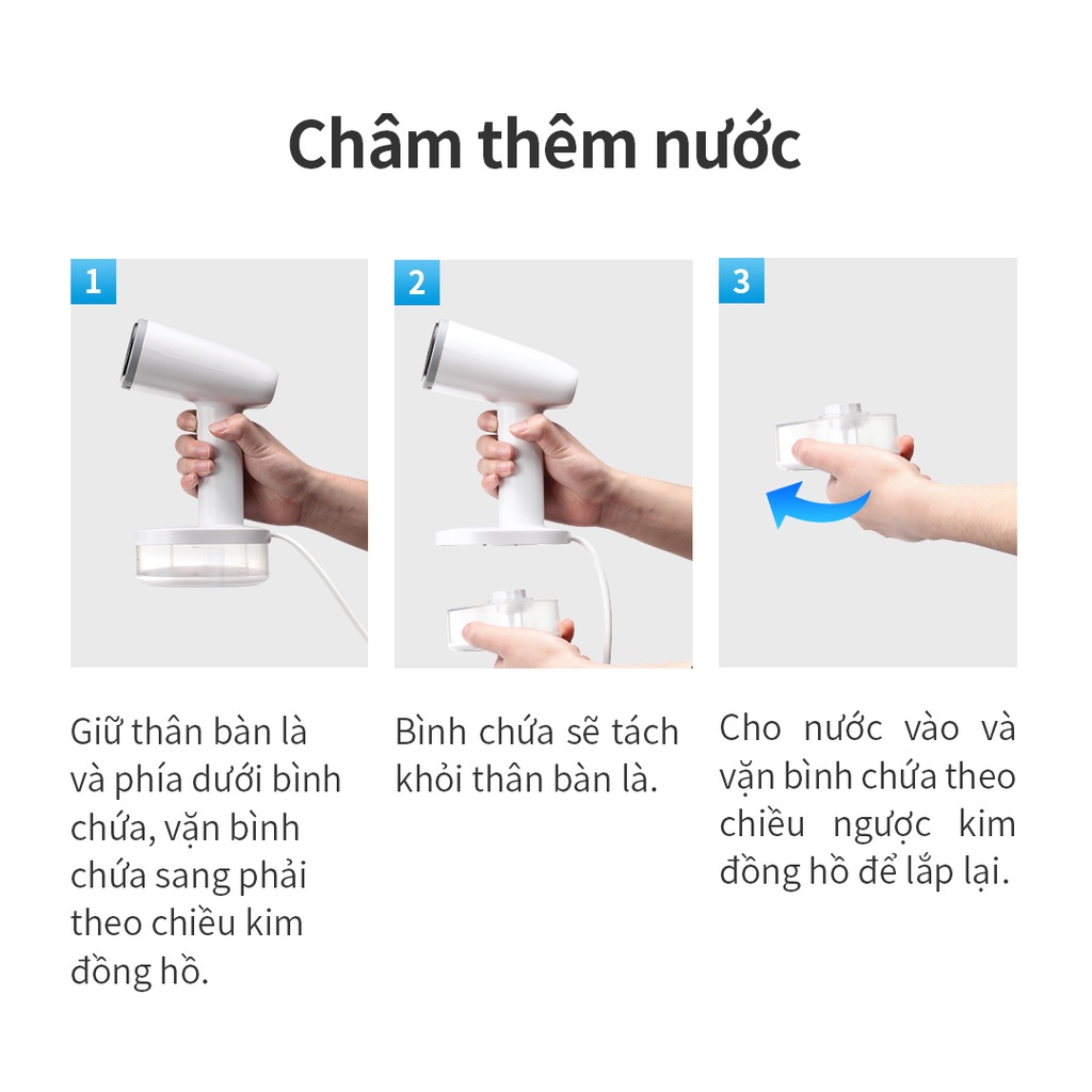 - Cho nước vào và vặn bình chứa theo chiều ngược kim đồng hồ để lắp lại.
