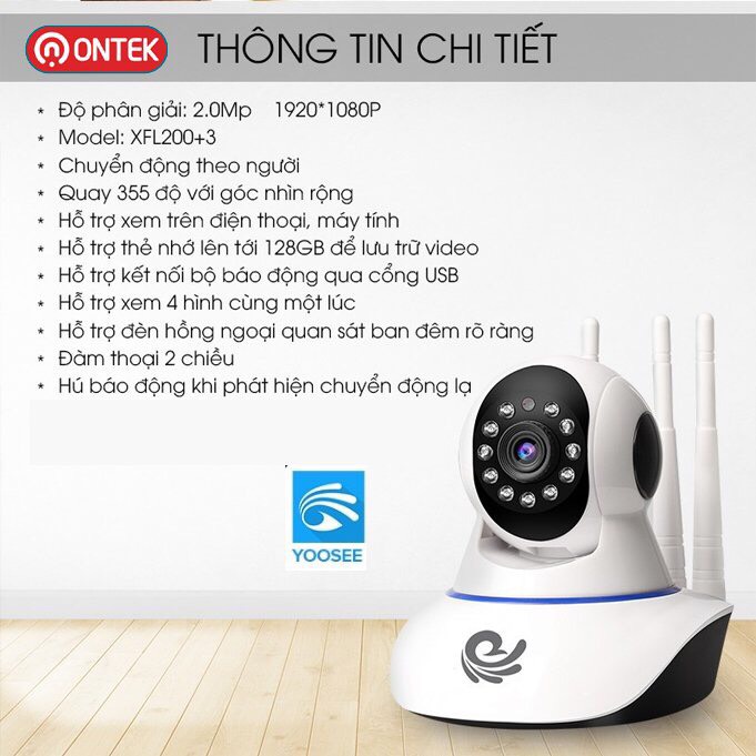 Cameras & Flycam > Camera giám sát > Camera giám sát kết nối internet || [BH 12 THÁNG ] Camera không dây wifi 3 ăng ten HD1080Còn hàng