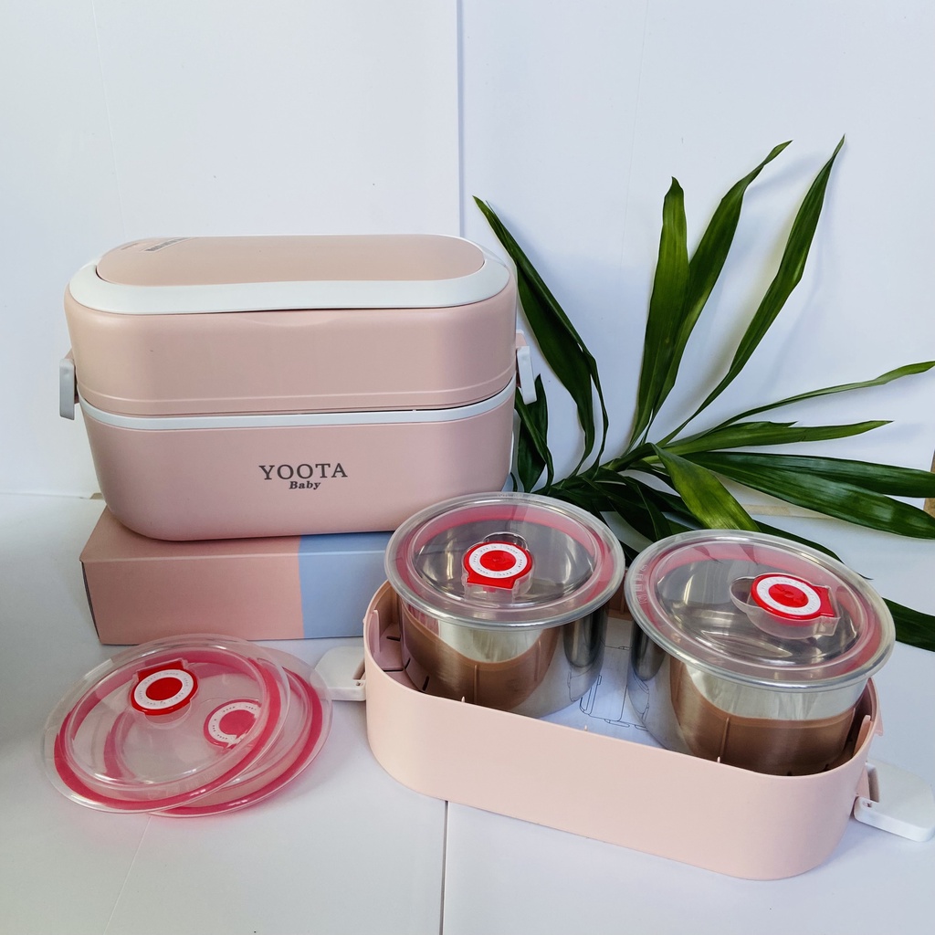(BH 12 Tháng) Hộp cơm cắm điện văn phòng 2 tầng 4 bát inox Yoota có chức năng giữ nhiệt, hâm đóng và tự nấu chín thức ăn