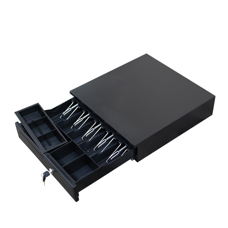 Sản phẩm có thể kết nối với máy in đẩy hộp tiền ra khi thanh toán. Hoặc sử dụng chìa khóa để mở tủ.