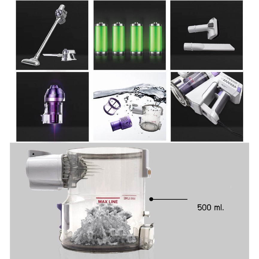* Công nghệ lọc hiện đại, dung tích hộp bụi 500 ml dễ dàng tháo lắp