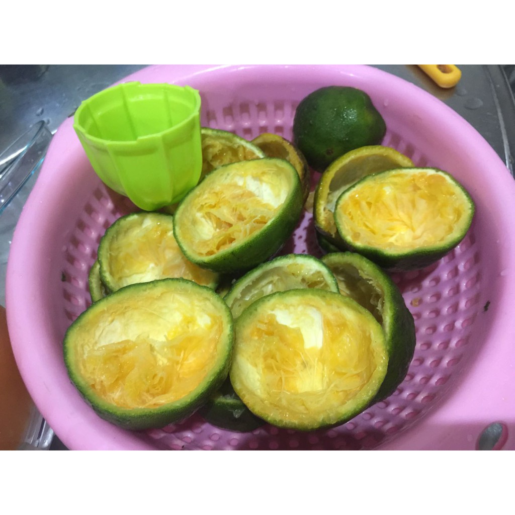 - Đặt miếng trái cây lên nón ép, bật thiết bị bằng cách ấn miếng trái cây xuống.