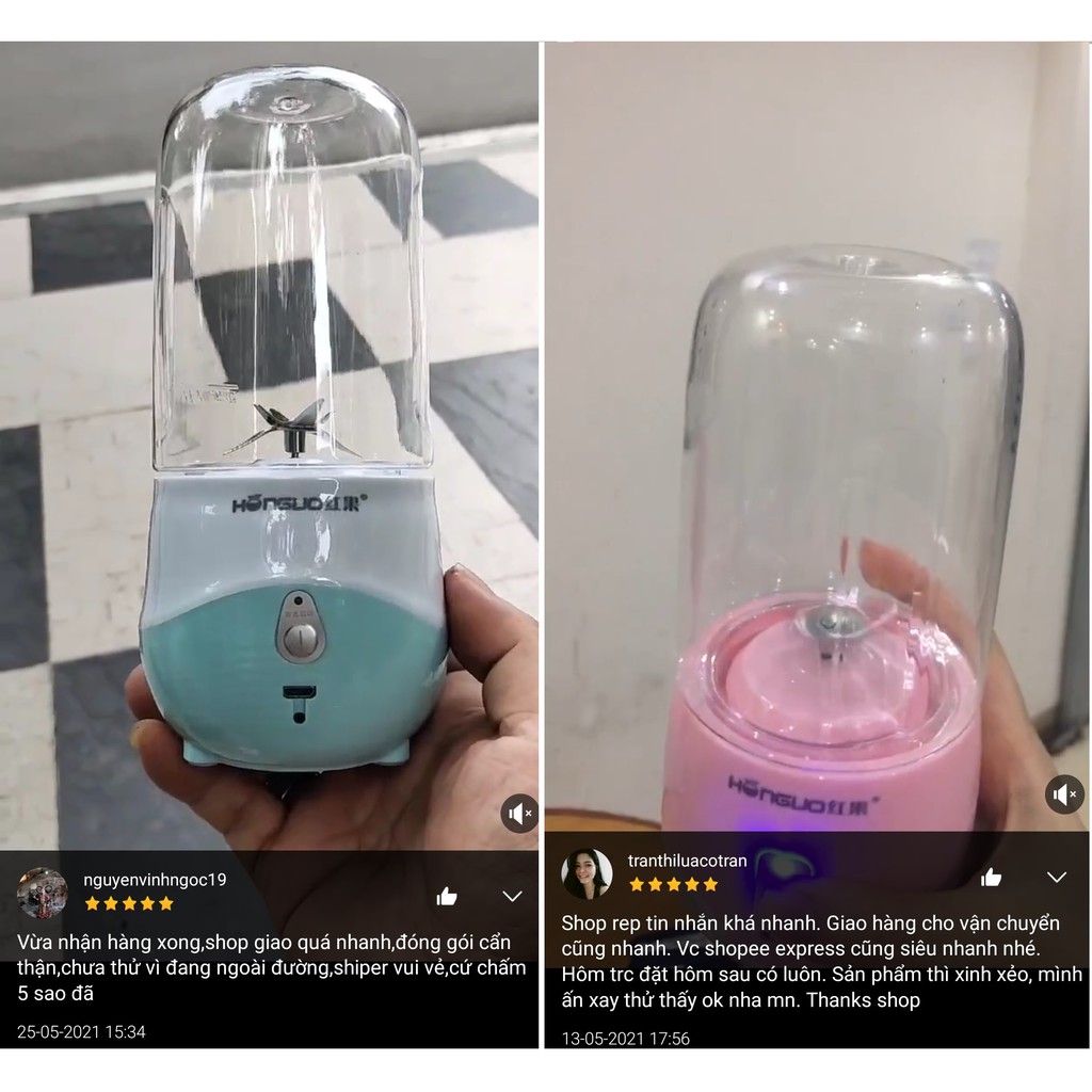 MÁY XAY SINH TỐ TRÁI CÂY CẦM TAY CAO CẤP HONGUO MINI SẠC PIN 300ml MẪU MỚI 2021