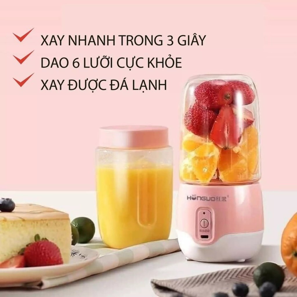 BH 12 THÁNG - Máy xay sinh tố cầm tay cao cấp HONGUO 300ml - Máy xay đa năng Mẫu mới 2021