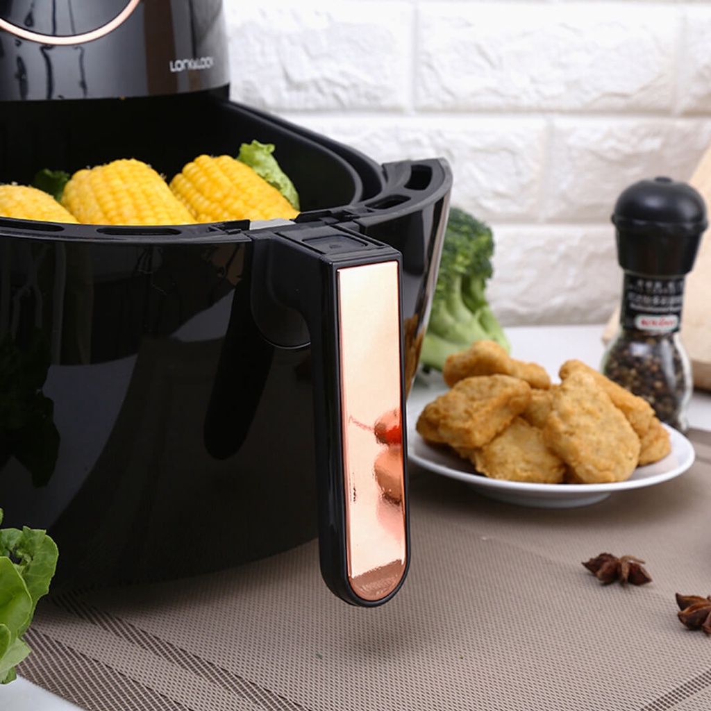 - Dung tích lớn lên tới 5.5L, với dung tích này, bạn có thể chế biến các món như: Cánh gà chiên, đùi gà chiên, khoai tây/ khoai lang chiên,… hoặc chiên nguyên cả con gà 2kg hoặc hơn 1 chút thoải mái