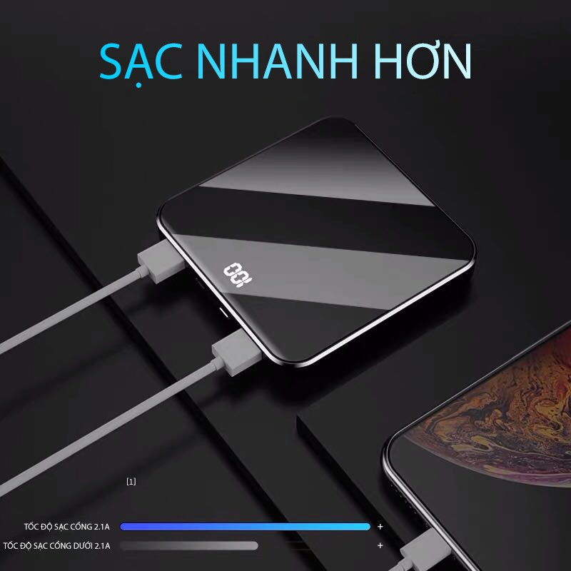 - Dung lượng pin: 10000mAh sẽ cung cấp năng lượng cho các thiết bị di động của bạn bất cứ khi nào và bất cứ nơi đâu một cách cực kì nhanh chóng. Sạc đồng thời 2 thiết bị