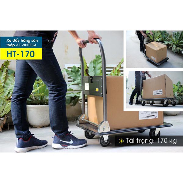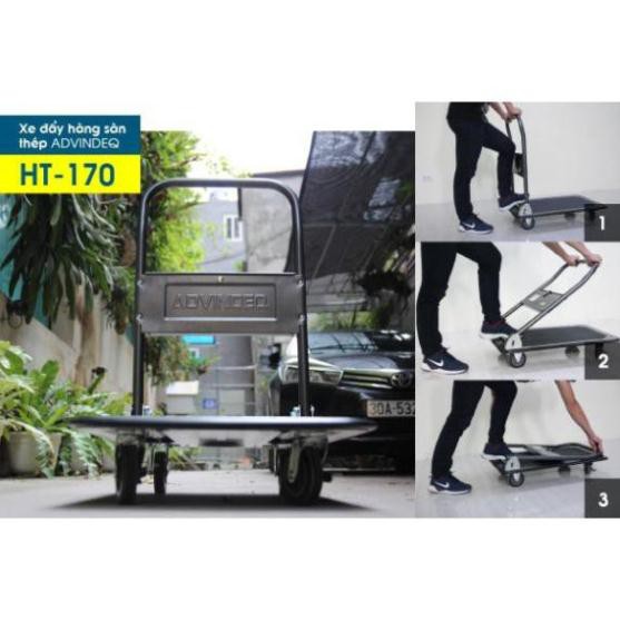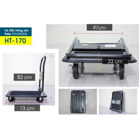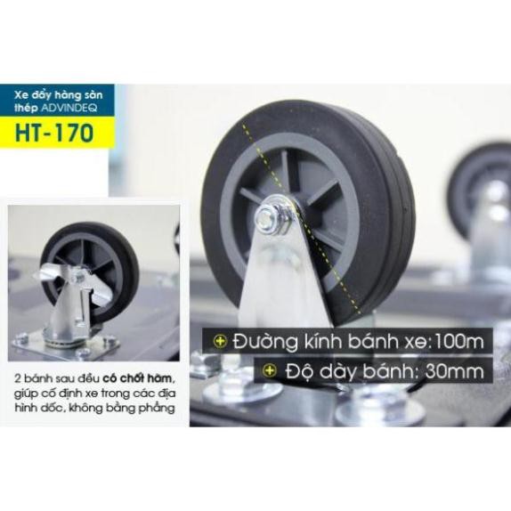 Giới thiệu [BH 12 THÁNG] Xe đẩy hàng 4 bánh gấp gọn ADVINDEQ HT-170, bánh cao su có khóa, sàn thép phủ nhám, xe kéo hàng gấp gọn