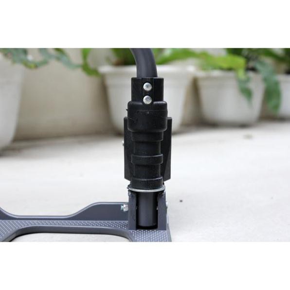 - Tay đẩy được sơn tĩnh điện chắc chắn, có độ bền cao, thiết kế vừa tầm không gây mỏi tay cho người dùng, trọng lượng xe rất nhẹ chỉ 5.5kg, hai bánh xe thiết kế đường kính 5" chắc chắn, siêu cứng với khoảng cách 2 bánh rộng tác dụng chống lật.