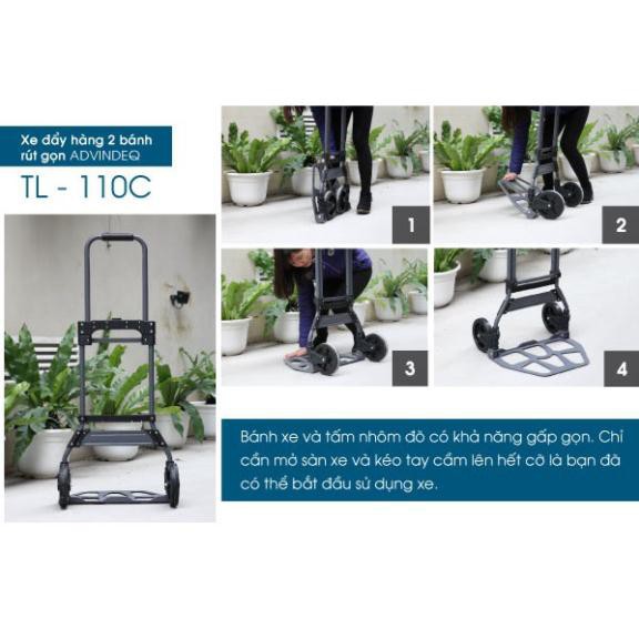 Xe đẩy hàng 2 bánh rút gọn Advindeq TL-110C: Đây là dòng xe đẩy hàng nhỏ gọn, thông minh và bán chạy nhất trên thị trường hiện nay. Giá cả cạnh tranh mạnh so với các dòng xe cùng loại. Xe có một số ưu điểm sau đây: