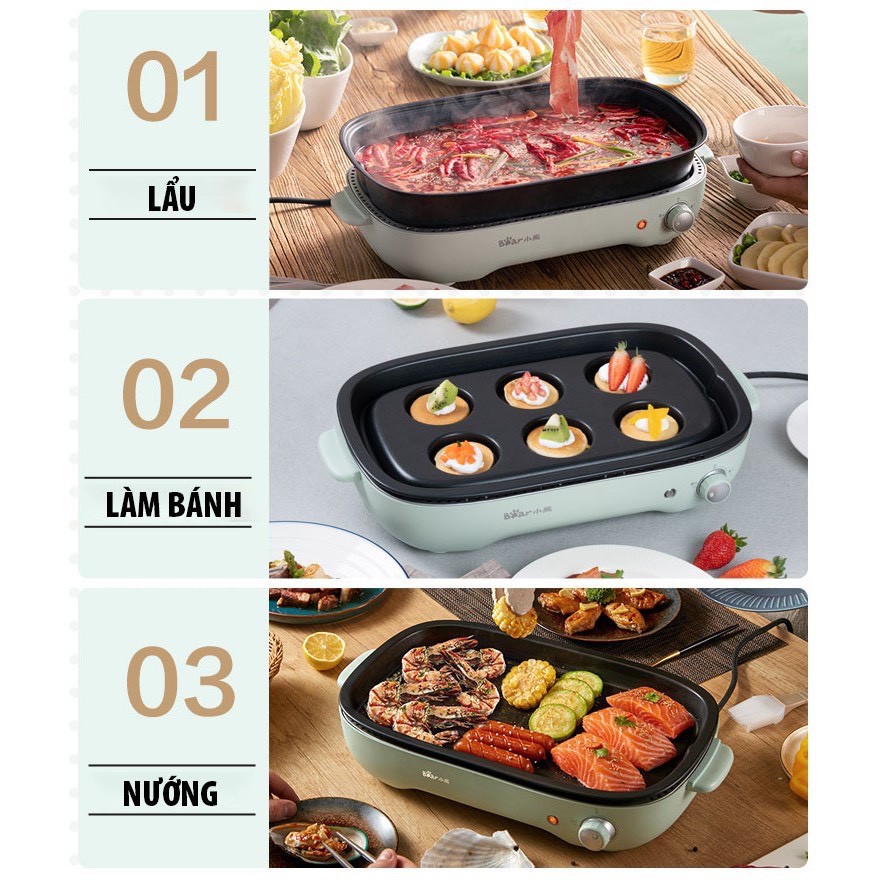 Thiết Bị Điện Gia Dụng > Đồ gia dụng nhà bếp > Nồi nấu chậm & Dụng cụ nấu chân không || BH 12T_ Có sẵn HCM Bếp LẨU-NƯỚNG- LÀM BÁNH BEAR,Bếp Điện Đa Năng 4-6 người ăn – 3 ngănTHÁO RỜI Mã B003Còn hàng