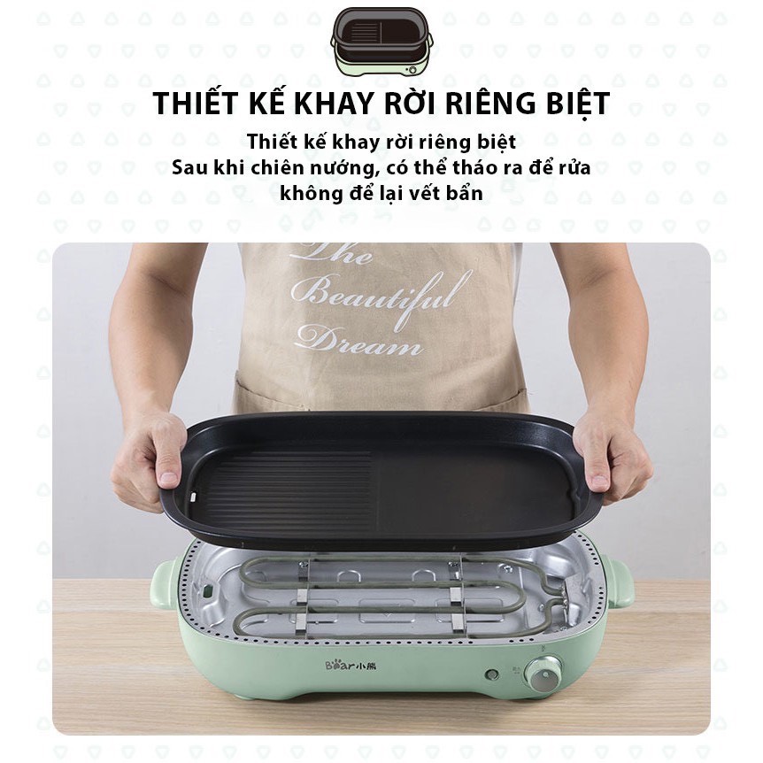 Thông tin sản phẩm: 12T_ Có sẵn HCM Bếp LẨU-NƯỚNG- LÀM BÁNH BEAR,Bếp Điện Đa Năng 4-6 người ăn – 3 ngănTHÁO RỜI Mã B003