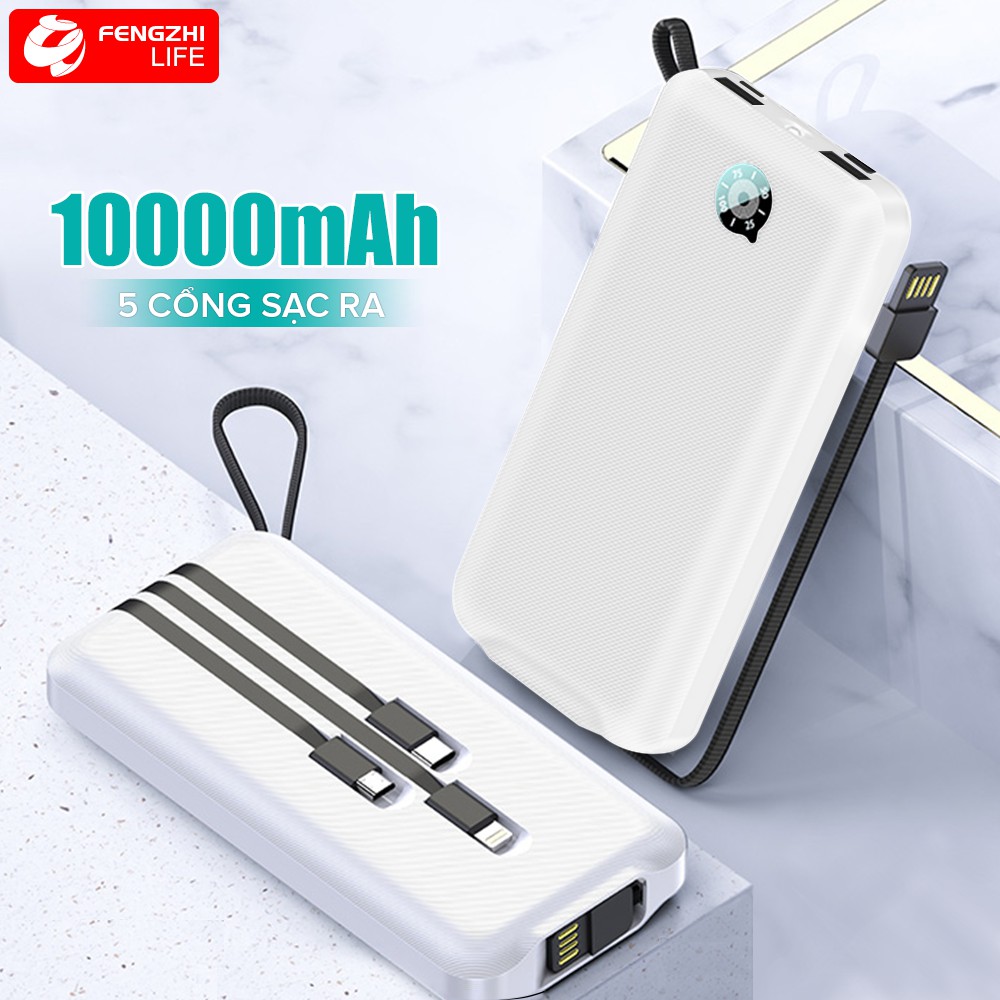 Điện Thoại & Phụ Kiện > Pin sạc dự phòng > 10000 - 20000mAh || [BH 12tháng 1đổi1]Sạc dự phòng kèm cáp sạc 10000mAh nhỏ gọn có màn hình Led sạc được 5 thiết bị cùng lúc FengZhi G101Còn hàng