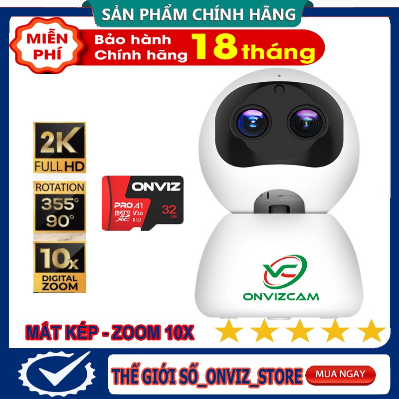 Giới thiệu [BH 18 THÁNG - HÀNG CHÍNH HÃNG] Camera ONVIZCAM RB20 wifi robot mắt kép siêu zoom 10x sử dụng app Carecam pro