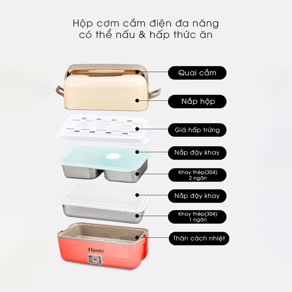 Thiết Bị Điện Gia Dụng > Đồ gia dụng nhà bếp > Nồi cơm điện || [BH 2 NĂM] Hộp cơm cắm điện cao cấp Maseki - Hộp cơm văn phòng giữ nhiệt, nấu & hâm nóng thức ănCòn hàng