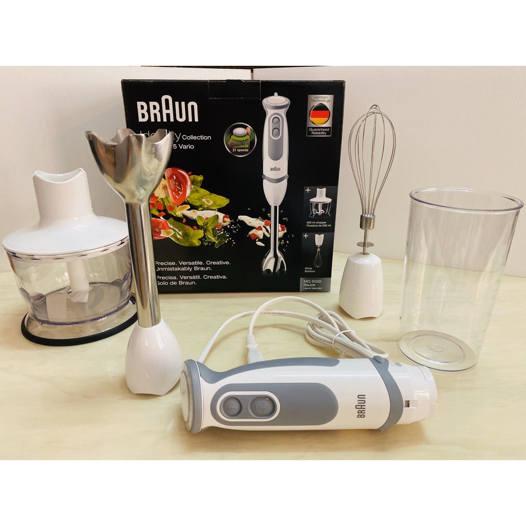 - Máy xay cầm tay Braun MQ5035 Sauce Vario 1000W 500ml sử dụng công nghệ điều khiển tốc độ thông minh, nhấn càng mạnh tốc độ xay sẽ càng nhanh.