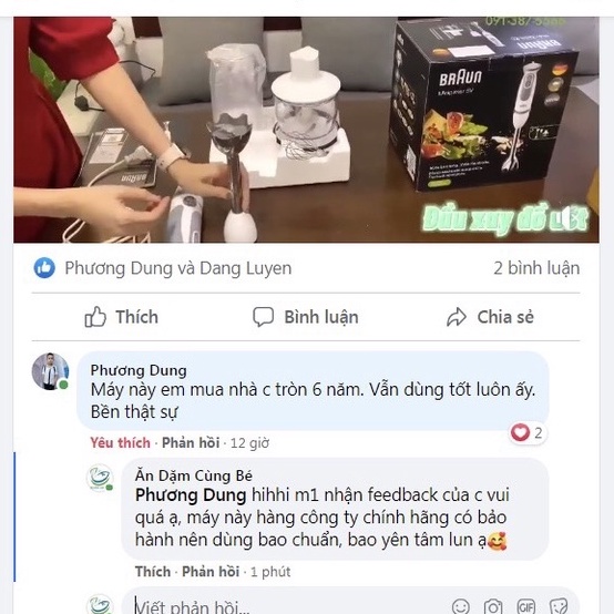 - Braun là thương hiệu Đức hàng đầu thế giới với lịch sử hơn 90 năm phát triển. Máy xay cầm tay Braun là Số 1 thế giới vì đạt được những tiêu chuẩn chất lượng cao cấp nhất của Đức và sản xuất tại châu Âu.