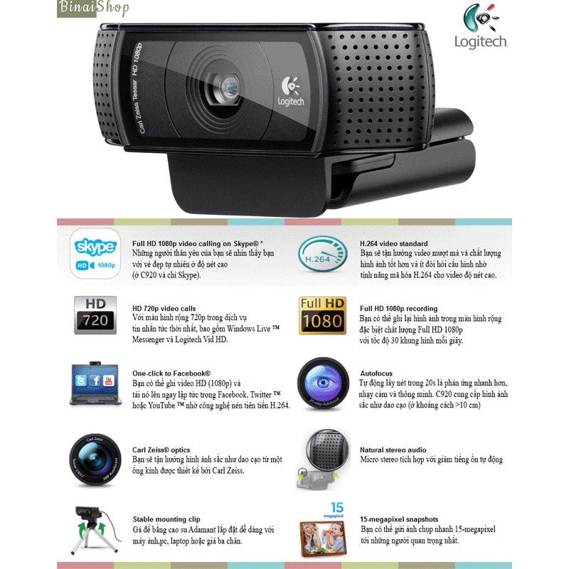 Máy tính & Laptop > Phụ Kiện Máy Tính > Webcam || [BH 24 tháng] Logitech C920 Pro - Webcam HD 1080p, Tích Hợp Micro StereoCòn hàng