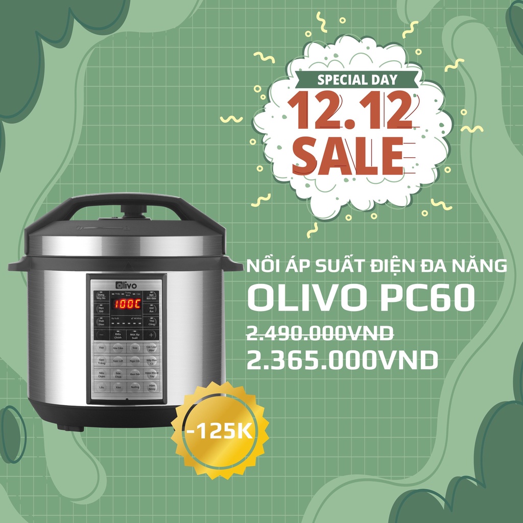 [Mã ELHADEV giảm 4% đơn 300K] [BH 24 tháng] Nồi Áp Suất OLIVO PC60, Nồi Áp Suất Điện Đa Năng olivo 1000W Chính hãng
