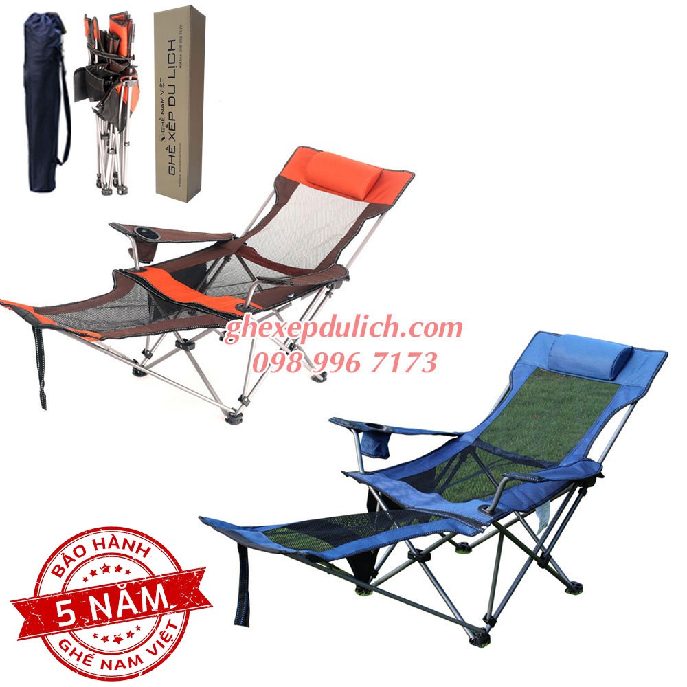 Để mua được Ghế Nam Việt chính hãng xin quý khách lưu ý: kể từ ngày 1/12/2018 toàn bộ sản phẩm Ghế Nam Việt đều có tem 7 màu chống hàng giả và tag đi kèm.Ghế xếp nằm du lịch là sản phẩm mới được thiết kế và đưa vào sử dụng rộng rãi kể từ năm 2018. Phiên bản chân tháo lắp có thể tháo rời phần gác chân để ngồi thoải mái hơn.