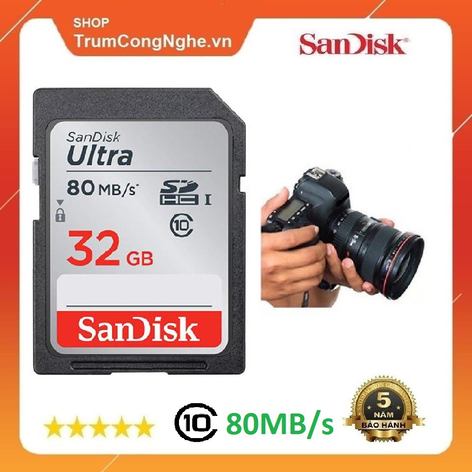 Giới thiệu [BH 5 năm] Thẻ nhớ Máy ảnh SD 32GB Ultra Class10 UHS-I 80MB/s giá rẻ