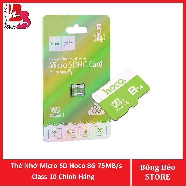 [BH 5 Năm] Thẻ Nhớ Micro SD Hoco 8G 75MB/s Class 10 Chính HãngBảo hành 5 năm chính hãng, lỗi 1 đổi 1 đối với sản phẩm còn mới và đầy đủ hộp, phụ kiện đi kèm.