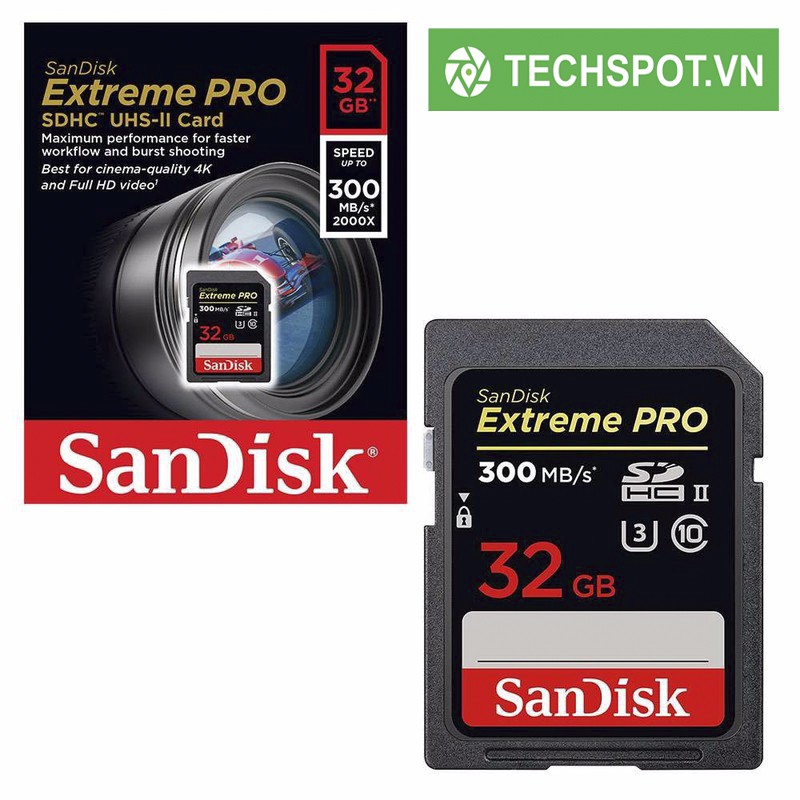 Thẻ nhớ SD Sandisk Extreme Pro UHS-II U3 2000x có dung lượng 32GB, 64GB và 128GB phù hợp với mọi nhu cầu lưu trữ của bạn