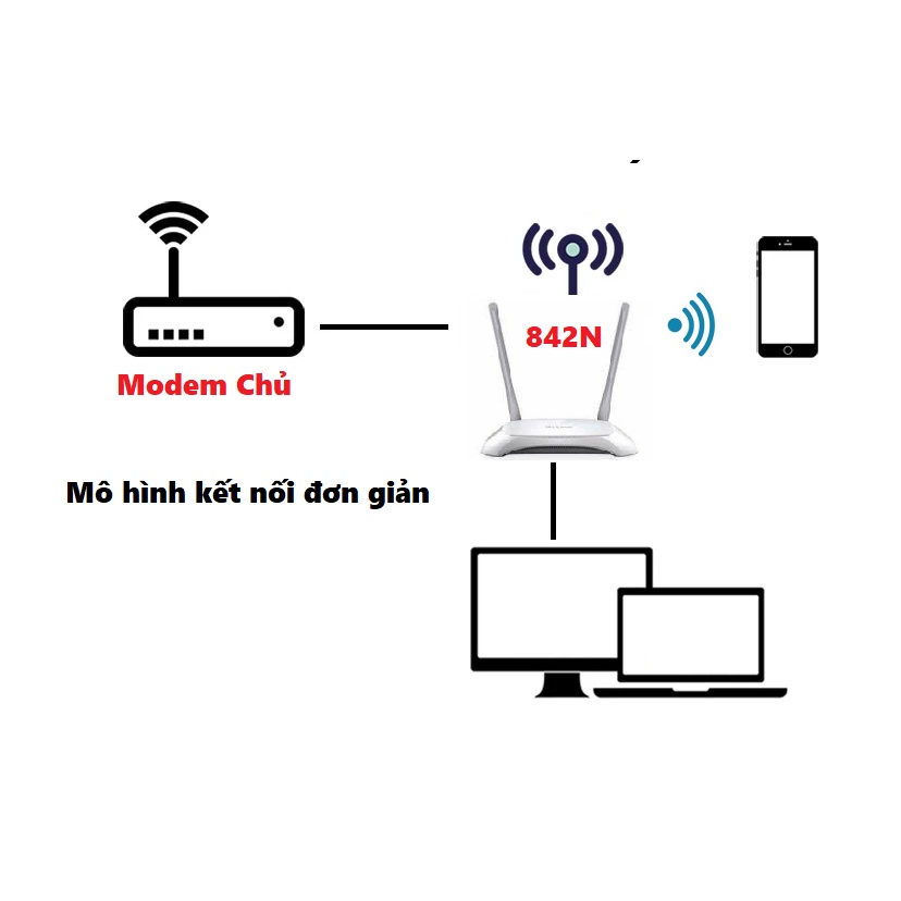 - Kết nối bằng dây mạng từ bộ Router Wifi Gốc ( Của nhà mạng) hoặc 1 cục modem wifi khác đã có mạng vào TPLINK 842N để cấp đường truyền mạng. 842N phát wifi sử dụng với 2 râu anten độ nhạy 5dBi trên dải băng tần sóng 2.4Ghz