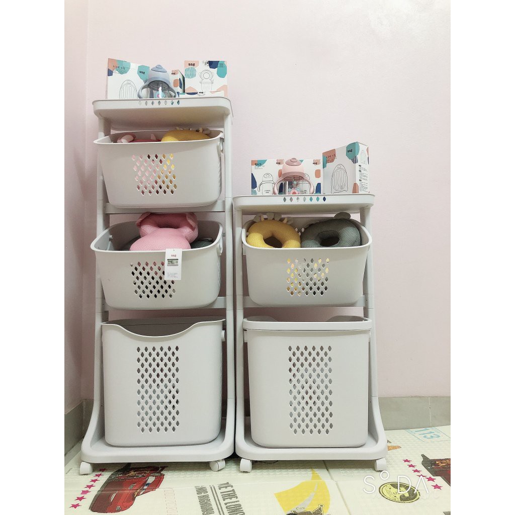 Với thiết kế chắc chắn, tinh tế & có 4 bánh xoay 360 độ giúp di chuyển dễ dàng, xe để đồ giặt 2 là sản phẩm lí tưởng giúp mẹ để quần áo bẩn và các đồ dùng khác một cách sạch sẽ & lịch sự cũng như vận chuyển dễ dàng đến nơi cần giặt.- Chất liệu: Nhựa PP cao cấp rất dày dặn & chắc chắn.