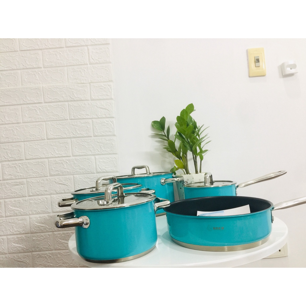 Bộ nồi từ chảo 5 chiếc cao cấp kiểu dáng sang trọng ARBER làm bằng chất liệu thép không gỉ, đáy bộ nồi 3 đáy siêu bền khi sử dụng, bộ nồi tiếp xúc nhiệt nhanh, êm, tản nhiệt đều khi nấu. Bộ nồi từ 5 chiếc cao cấp ARBER đạt các tiểu chuẩn và chất lượng được cấp chứng chỉ sản phẩm. Bộ sản phẩm chuẩn: + 01 nồi 24cm + 01 nồi 20cm + 01 nồi 18cm + 01 quánh 16cm + 01 chảo chống dính.Dung tích: