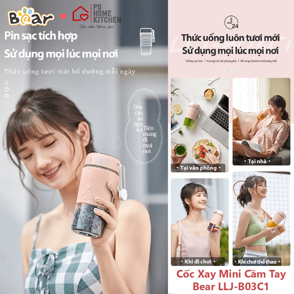 [BH CHÍNH HÃNG 12T] Máy Cốc Xay Mini Cầm Tay BEAR, healthy, xay sinh tố, dùng pin sạc tiện lợi, chống nước, tự làm sạch