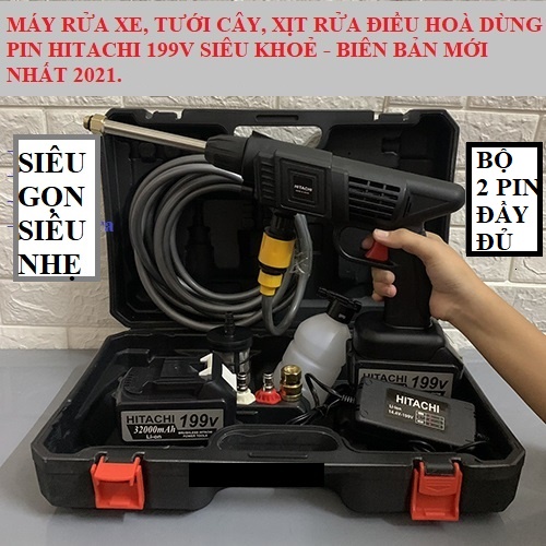 [BH1NĂM] Máy rửa xe dùng pin mini, Máy xịt rửa tăng áp Hitachi 199V áp lực cao 1400W