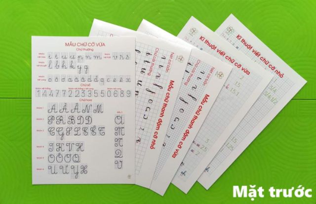 • Gồm: Mẫu chữ BGD vừa và nhỏ (chữ thường, số, hoa theo nhóm) Mẫu chữ Thanh đậm vừa và nhỏ: xếp theo nhóm, ghi chú khoảng cách (nét cơ bản, chữ thường, số, hoa)