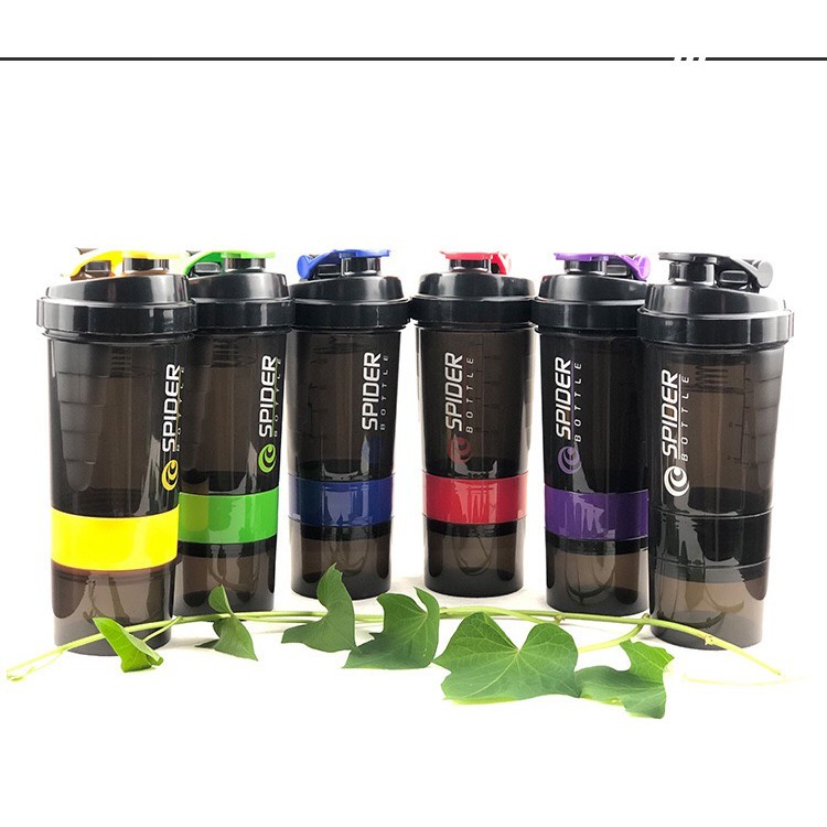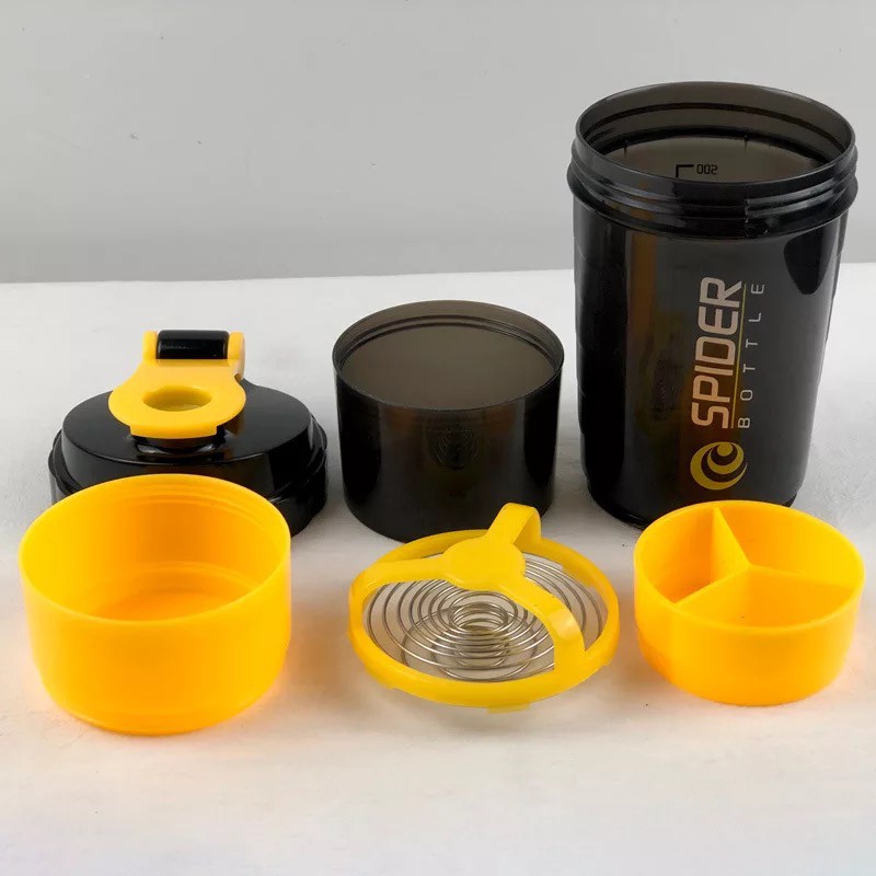 Bình lắc gym pha sữa 3 ngăn của SPIDER với 3 ngăn riêng biệt tiện lợi- 1 ngăn lớn nhất với dung tích 500ml (để pha sữa) + 1 lò xo giúp làm tan sữa hiệu quả