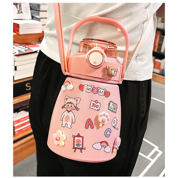 Giới thiệu Bình giữ nhiệt 1000 ml, bình giữ nhiệt cute có ống hút, inox 304 cao cấp không rỉ tặng kèm sticker