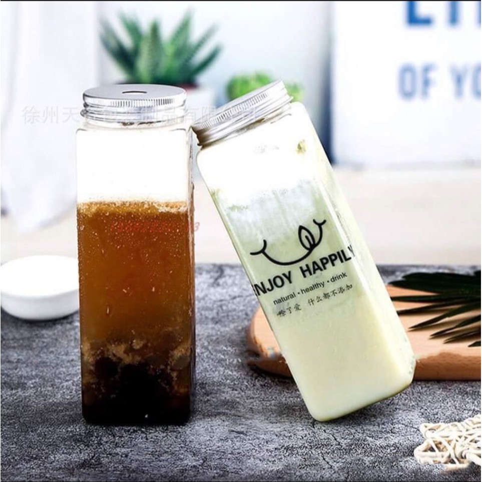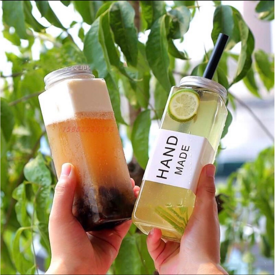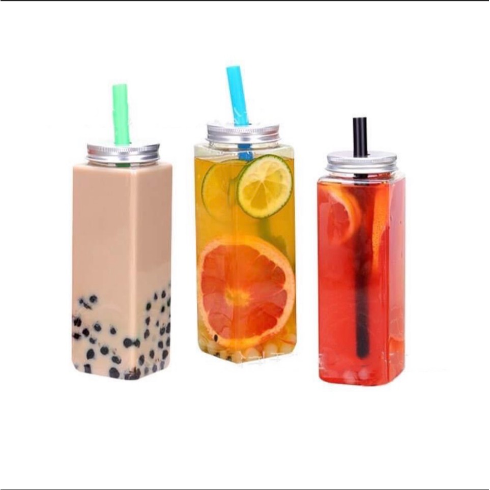 Bình Nhựa Vuông Có Nắp Nhôm 500ml dùng cho chứa nước hoa quả hand made.Có thể dùng để đựng những bánh , kẹo khi không dùng hết