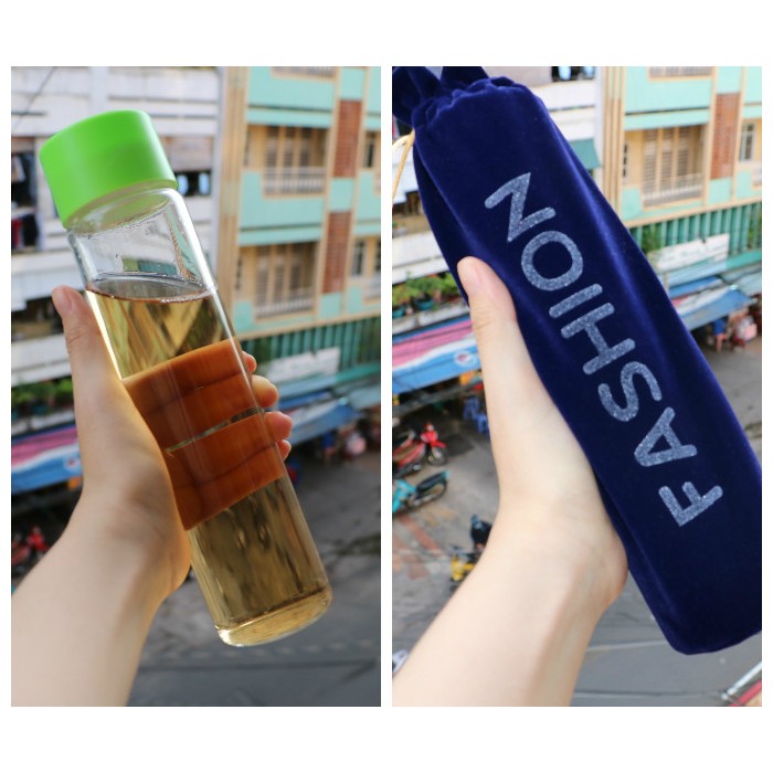 COMBO BÌNH NƯỚC + TÚI VẢI NHUNG MẪU BÌNH ĐƠN GIẢN NHẤT CỦA NĂMVì là bình thủy tinh :