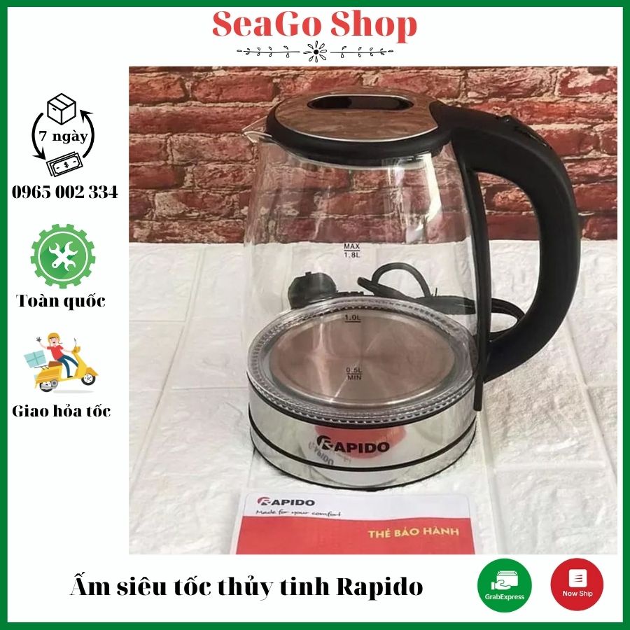 Giới thiệu ✔️ Bình Siêu Tốc Thủy Tinh Rapido RK1818 Chính Hãng, Ấm Đun Nước Siêu Tốc Cách Nhiệt An Toàn, Công Suất Lớn [BH 1-1]