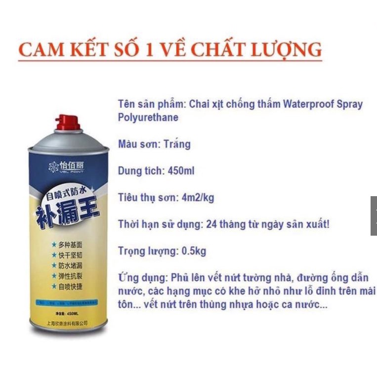 - Tên sản phẩm: Chai xịt chống thấm Waterproof Spray Polyurethane