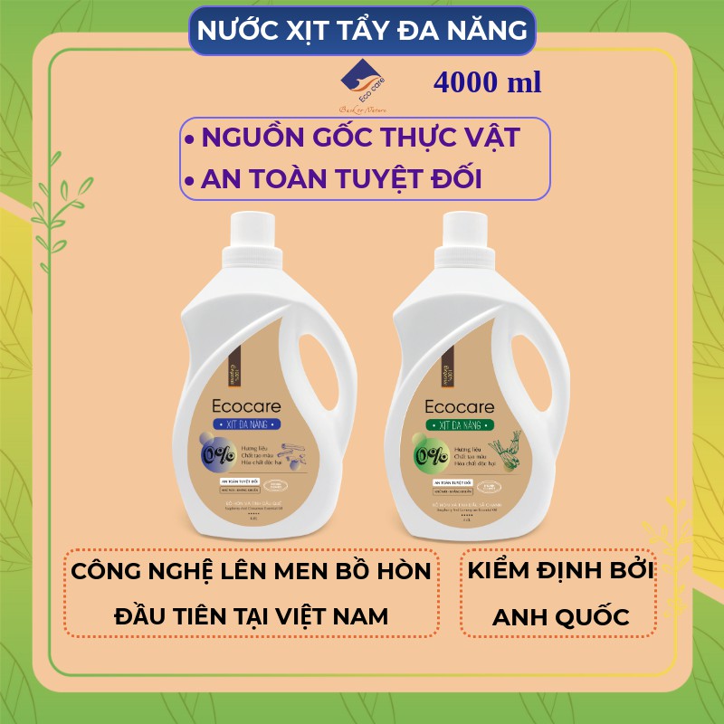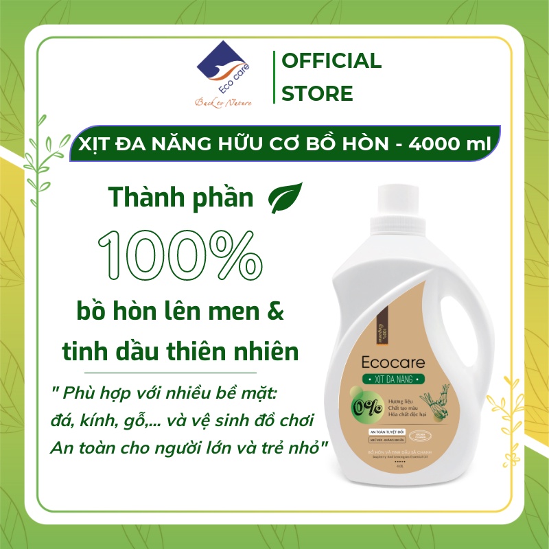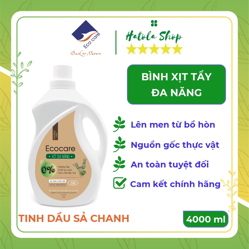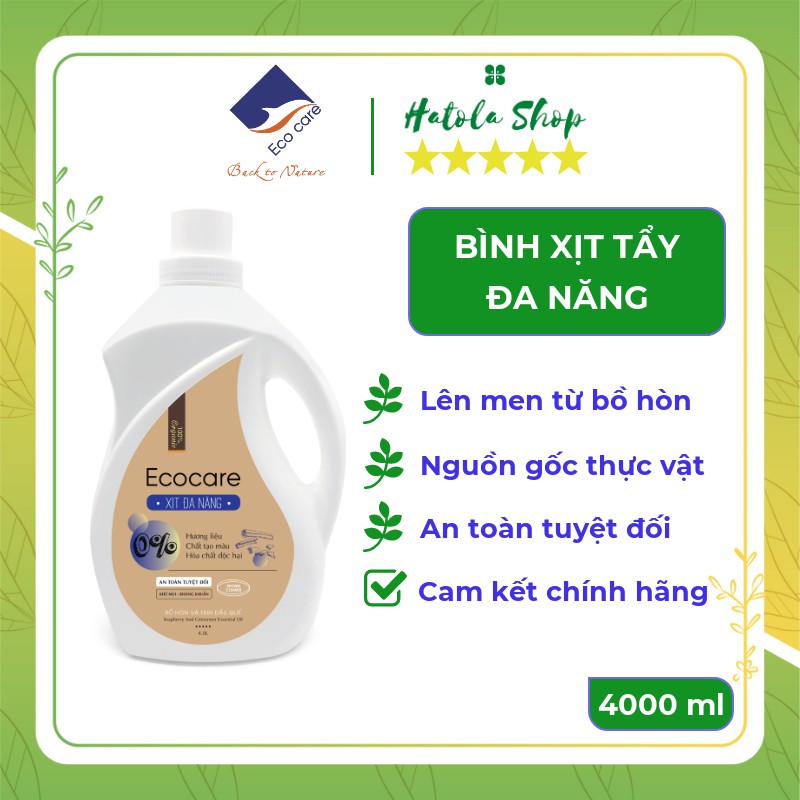 Giới thiệu Bình Xịt Tẩy Đa Năng hữu cơ Bồ hòn Ecocare 4000ml, Chất tẩy đa năng tinh dầu tự nhiên Quế, Sả chanh